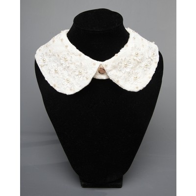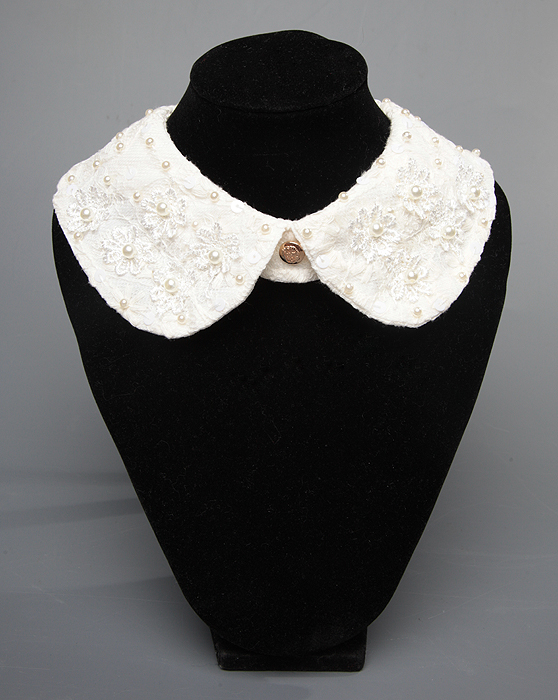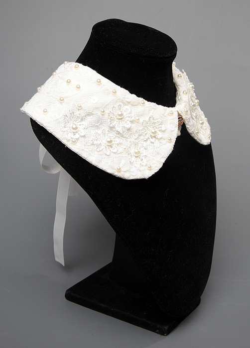 Ожерелье-воротник "Белоснежка". Кружево, пайетки, искусственный жемчуг, ручная работа. Гонконг, 2010 год