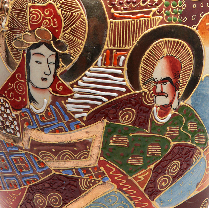 Стариная японская ваза в стиле "мориаж" (moriage).