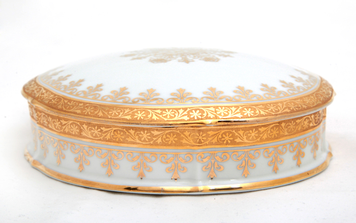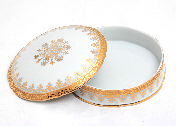 Шкатулка для мелочей. Фарфор, деколь, золочение 22 К золотом. Limoges, Франция, 1930-е годы