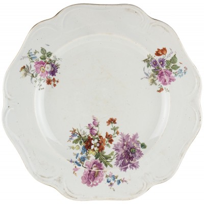 Сохранность хорошая, без сколов и трещин. Незначительные нюансы глазуровки на обратной стороне тарелки. Потертость золочения в соответствии с возрастом.