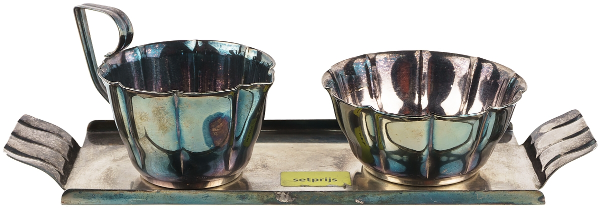 Сахарница и сливочник на подносе, Металл, серебрение, Западная Европа, первая половина ХХ века