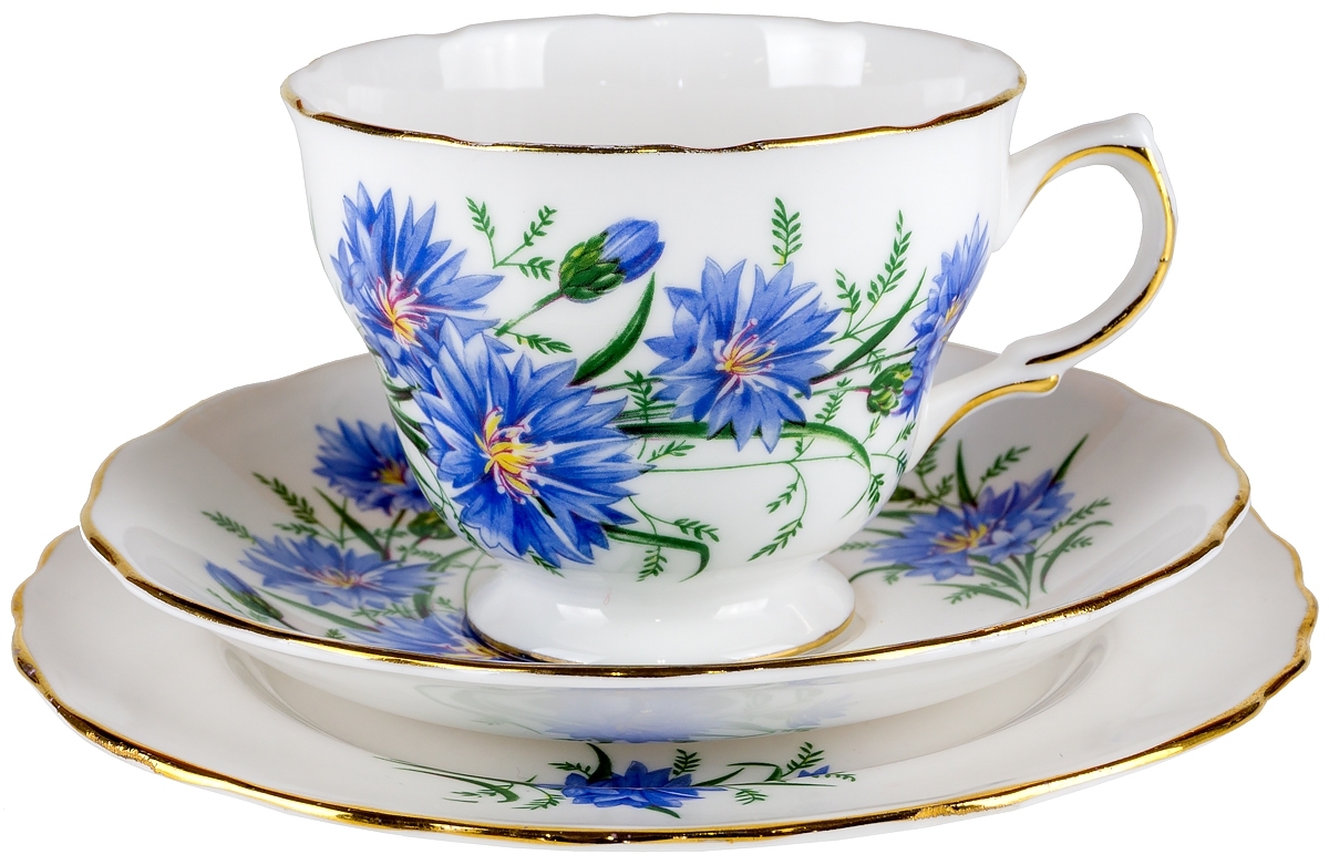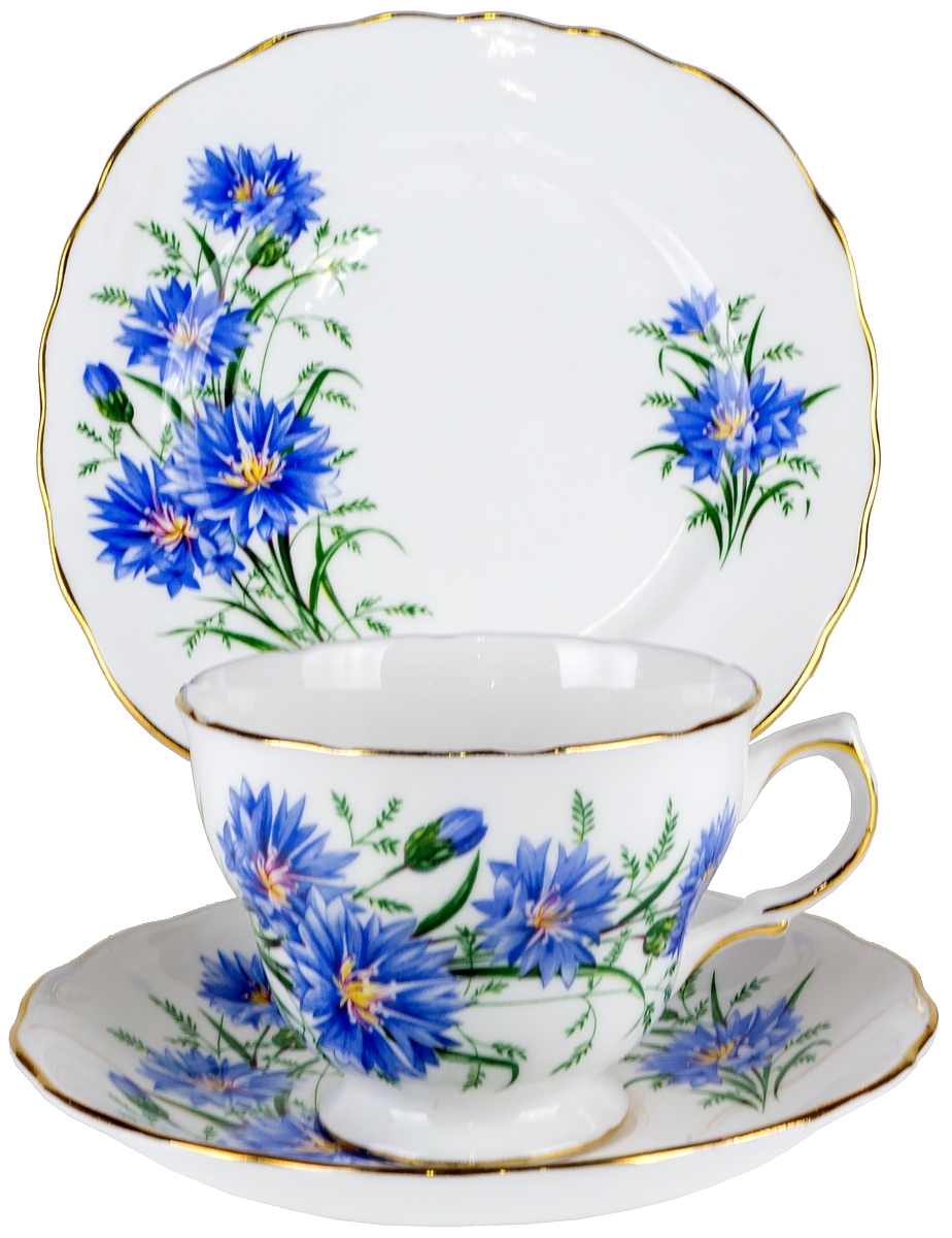Чайное трио "Васильки". Английский фарфор. Royal Vale, Великобритания, вторая половина 20 века