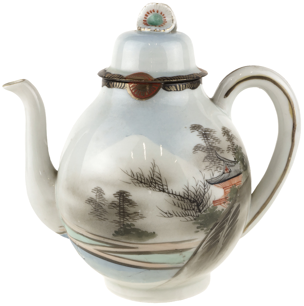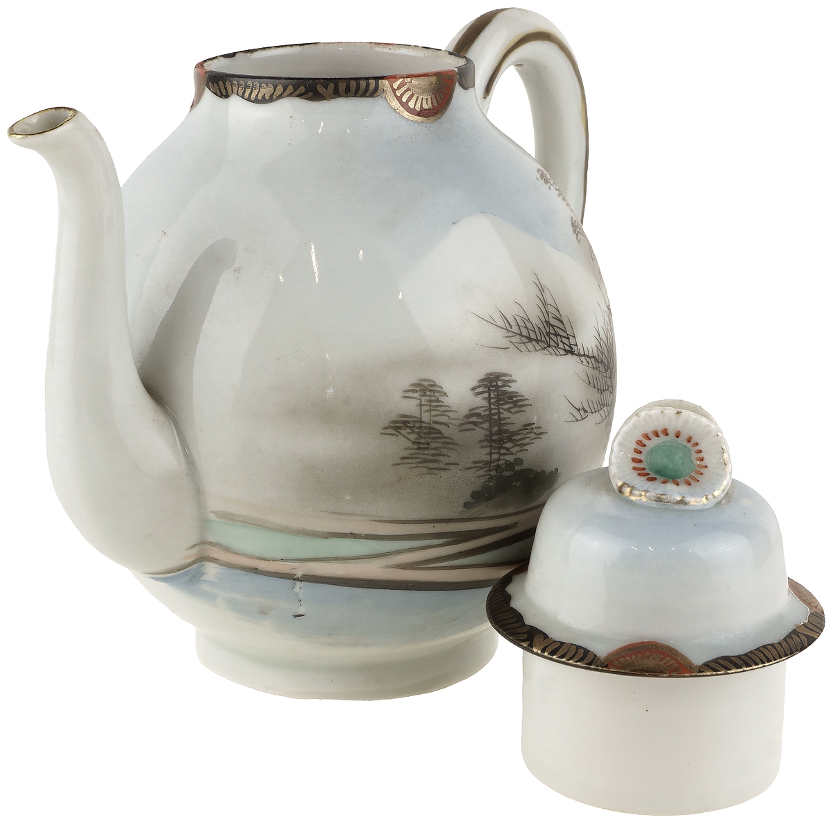 Чайник заварочный "Японский пейзаж". Фарфор, ручная роспись. Япония, середина 20 века