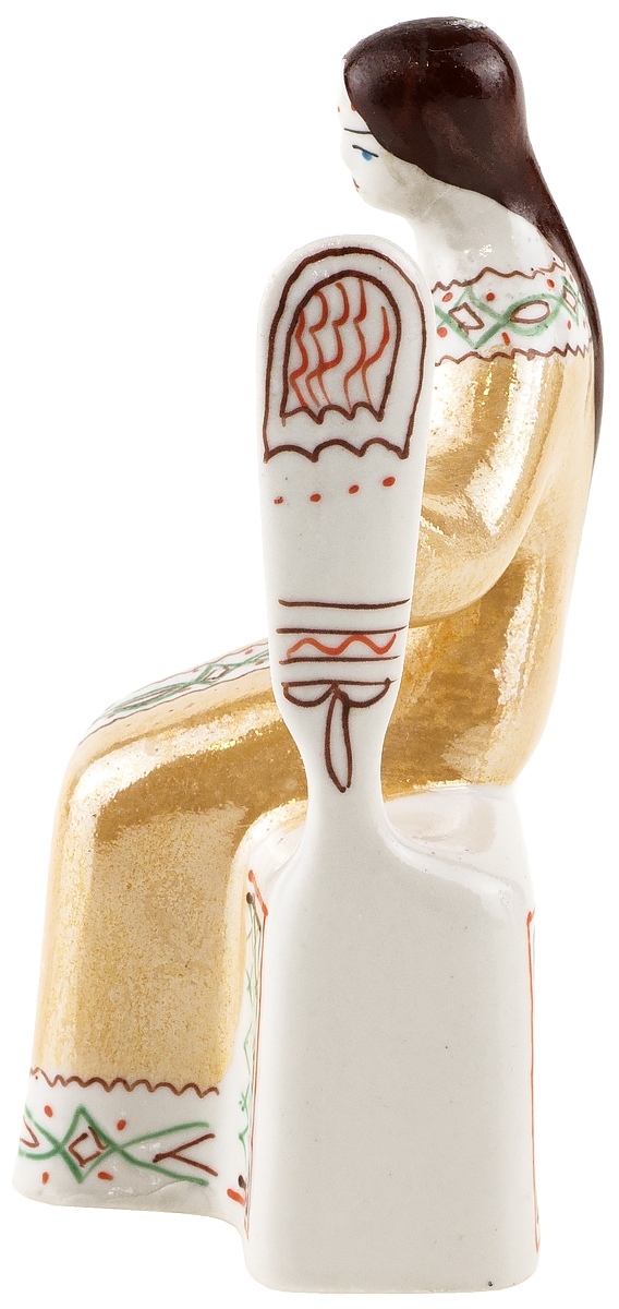 • Статуэтка фарфоровая "Пряха", высота 12 см, винтаж, Бронницы, СССР, 1960 - е гг. вид 4