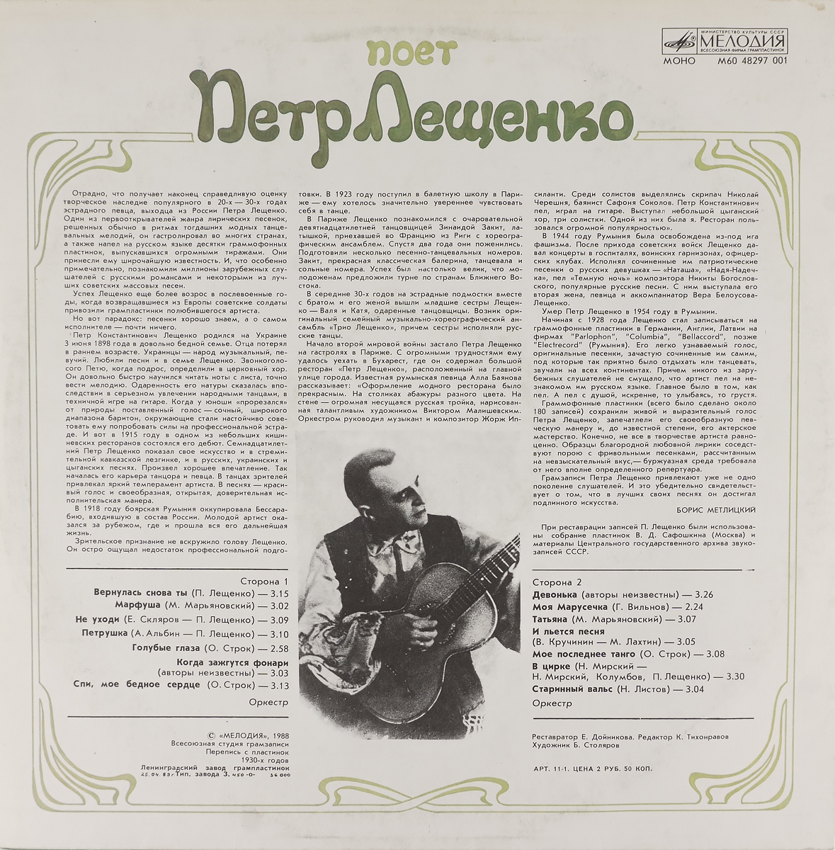 Виниловая пластинка Поет Петр Лещенко 1 LP