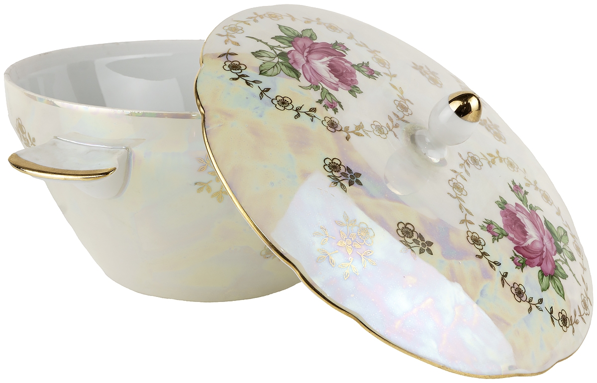 Блюдо глубокое с крышкой "Роза", супница, Фарфор, Kahla, ГДР, вторая половина 20-го века