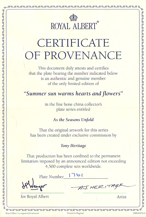 Тони Херитейдж "Летнее солнце согревает сердца и цветы", декоративная тарелка из серии "Сезон цветения".
