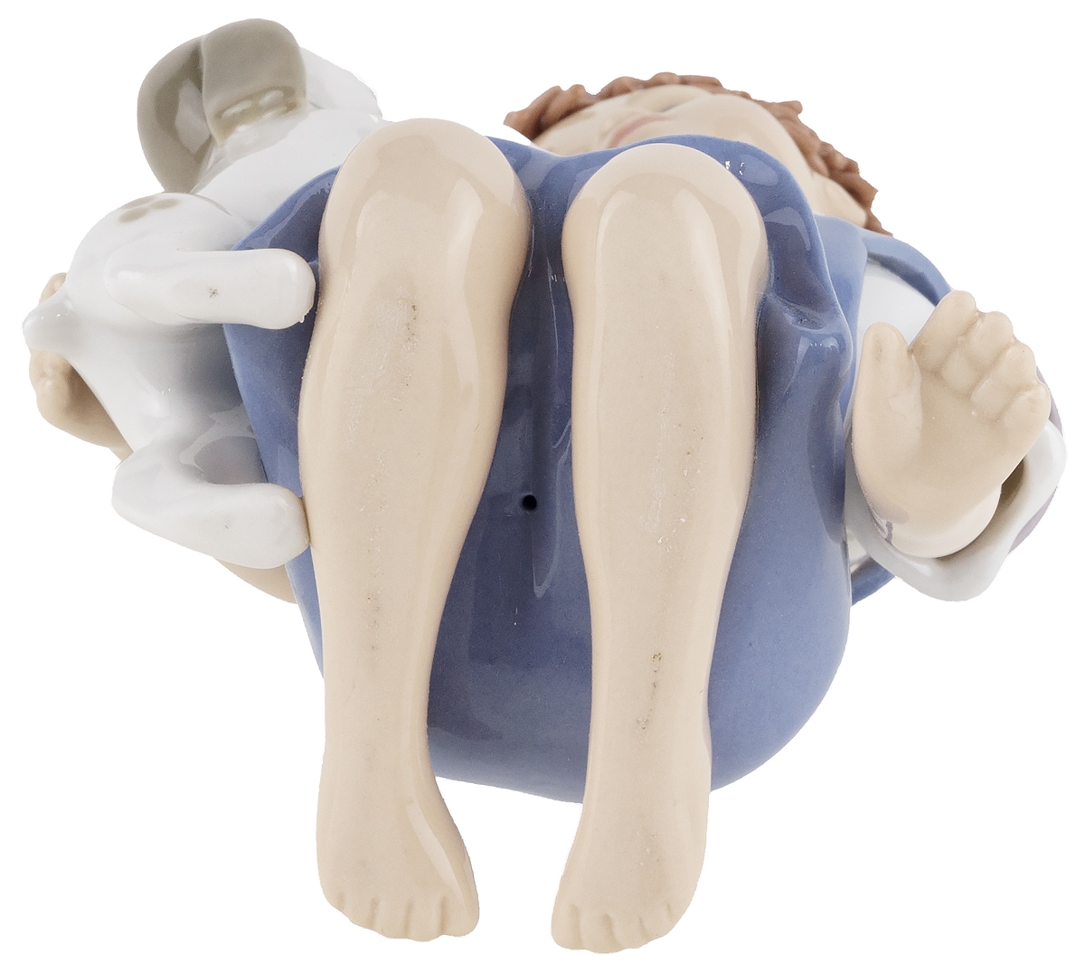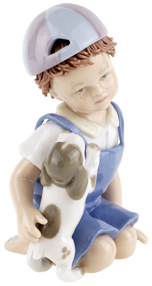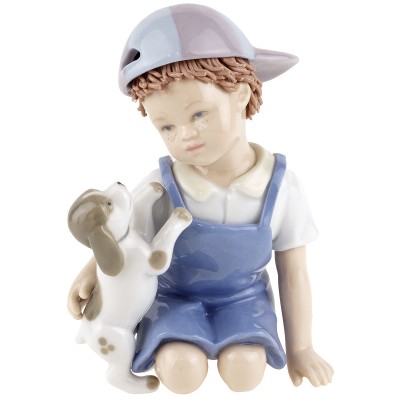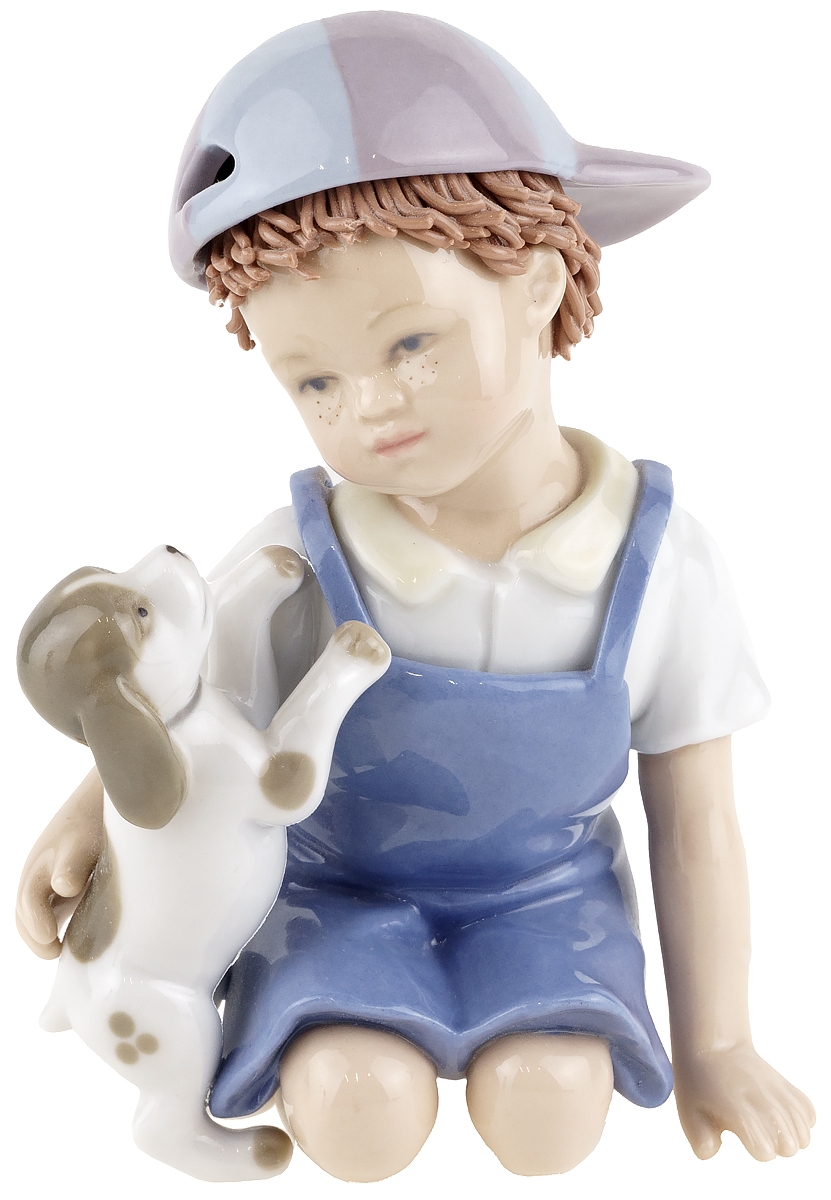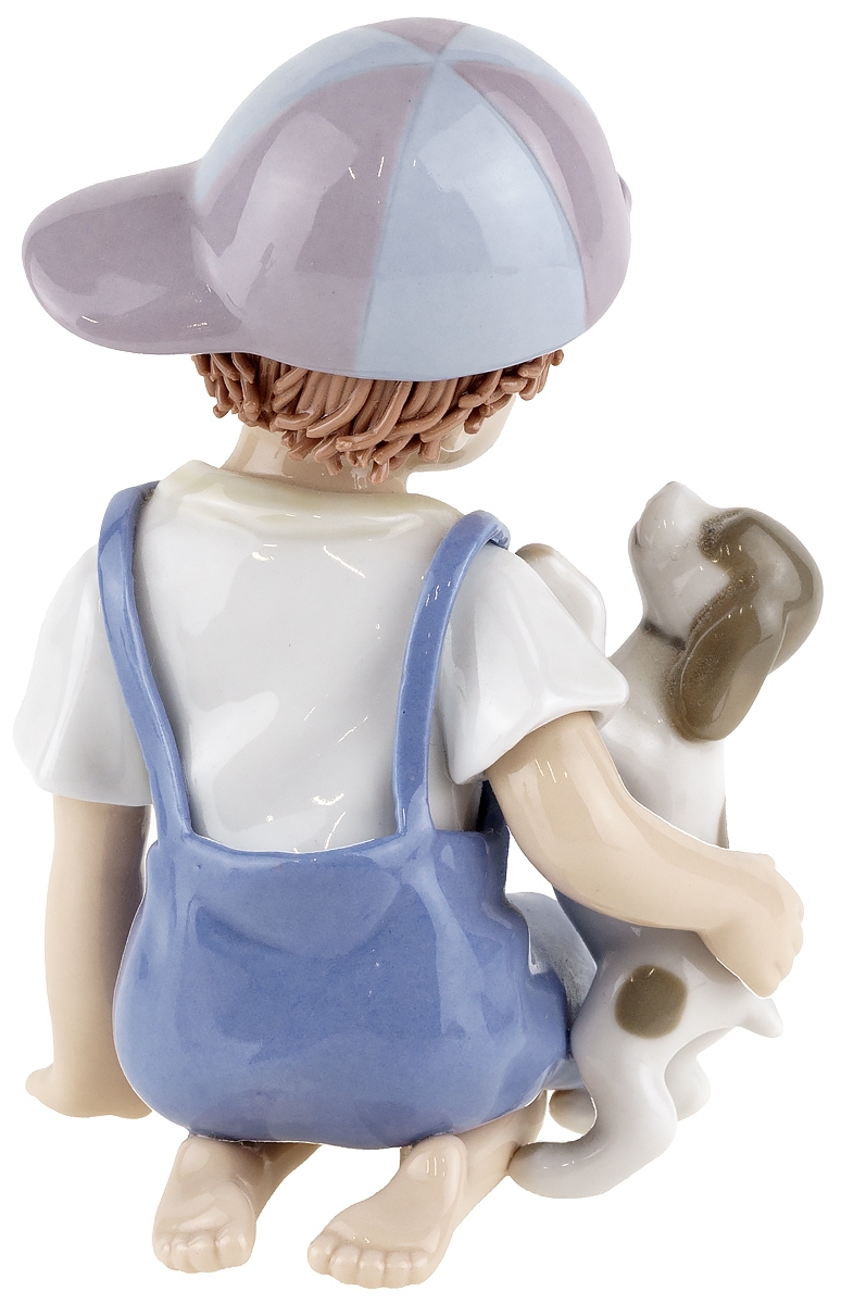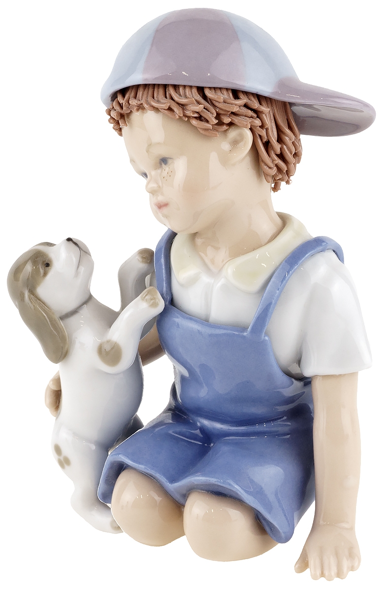 Статуэтка фарфоровая "Мальчик с собакой", Высота 12,5 см, винтаж, Zampiva, Италия, вторая половина 20 века