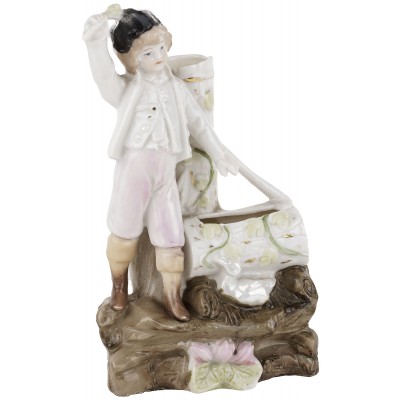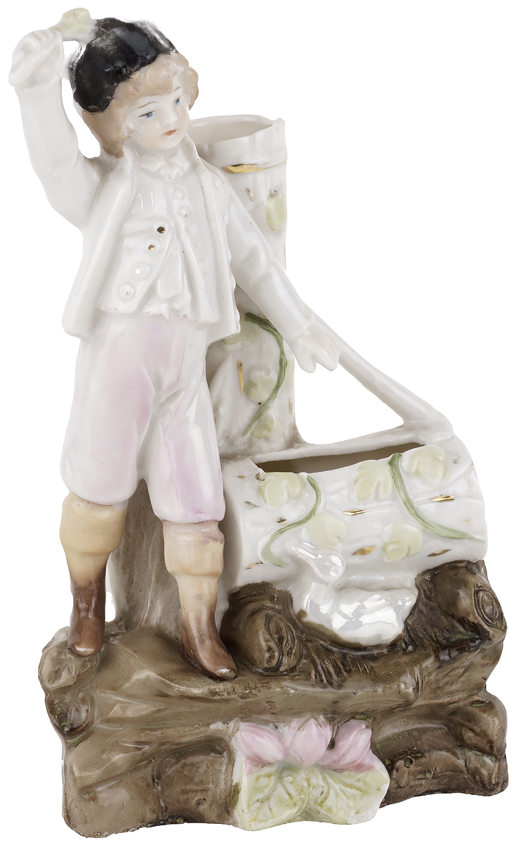 Статуэтка фарфоровая антикварная - ваза для одного цветка "Мальчик", высота 14 см, Германия, конец 19 века (с нюансом)
