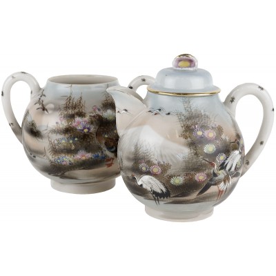 Сахарница и молочник "Птички", фарфор, ручная роспись, Япония, винтаж, вторая половина 20 века