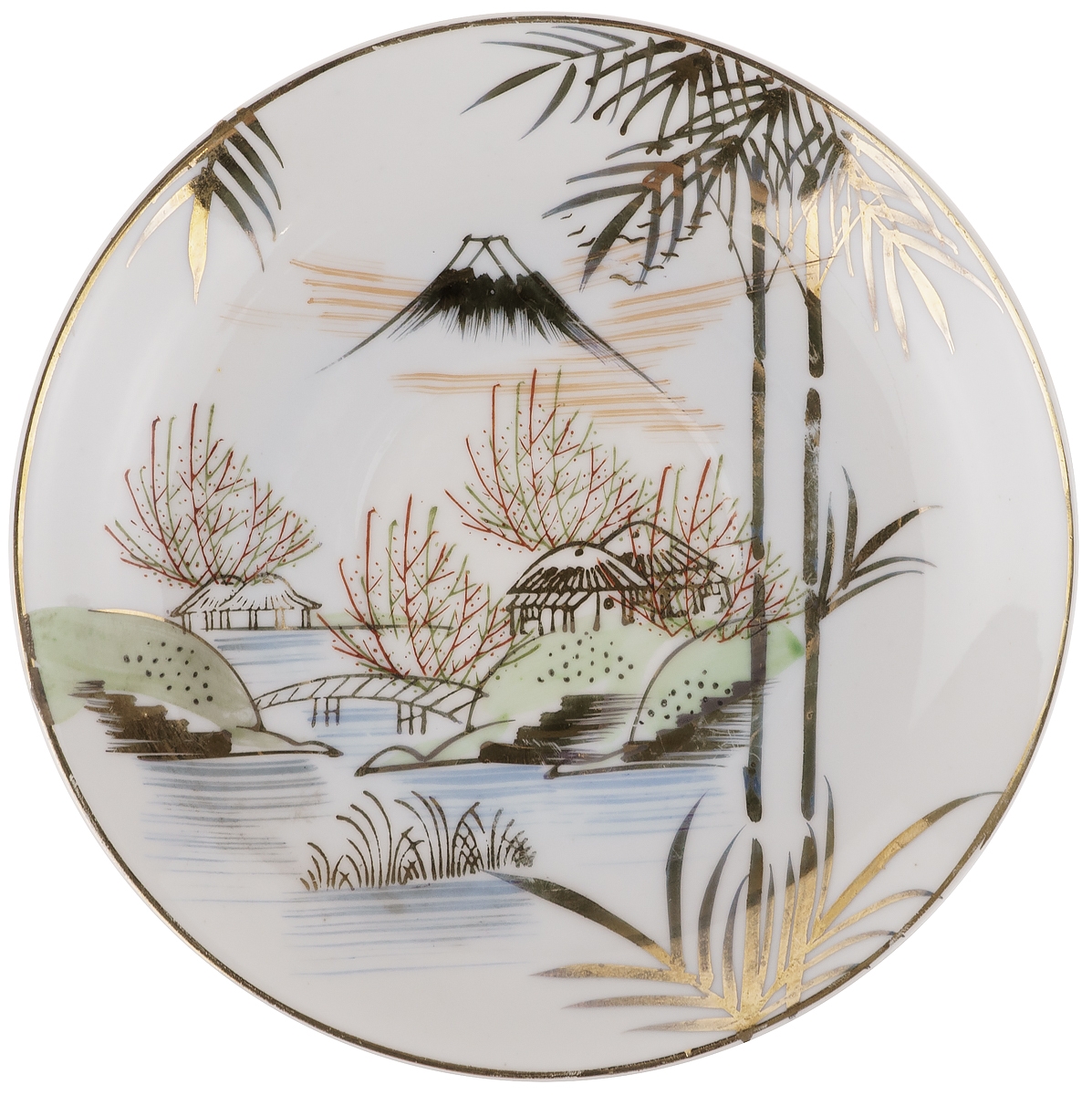 Маркировка: на блюдце и тарелке надглазурное клеймо красного цвета Kutani. Handpainted. Japan.
