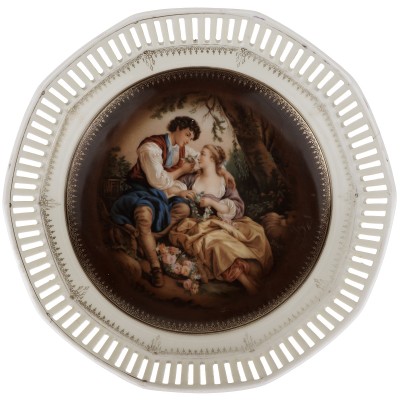 Конфетница, фруктовница, блюдо для сервировки "Свидание", прорезной фарфор, Shumann Bavaria, Германия, 1940-е гг.