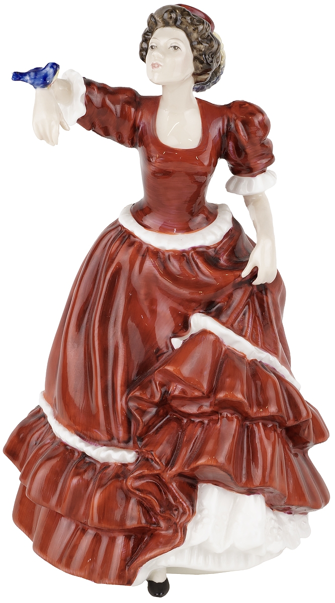 Статуэтка фарфоровая "Паулина", винтаж, девушка в красном платье, Высота 19,5 см, Royal Doulton, Великобритания, 1993 год