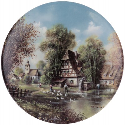 Декоративная тарелка на стену, художник Helmut Glabl "У пруда". Серия "Деревенская романтика".