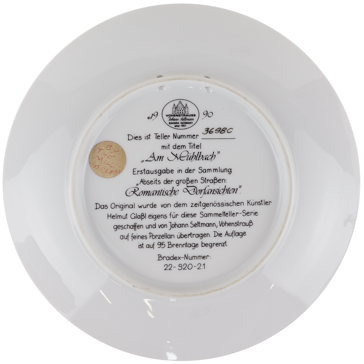 Маркировка: подглазурное клеймо черного цвета "Bavaria. Germany".