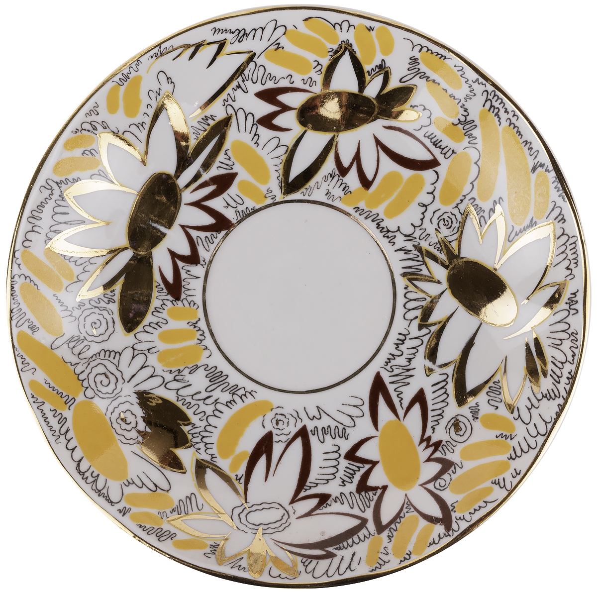 Чайная пара "Золотые ромашки", Фарфор, винтаж, желтая, ЛФЗ, СССР, вторая половина 20 века