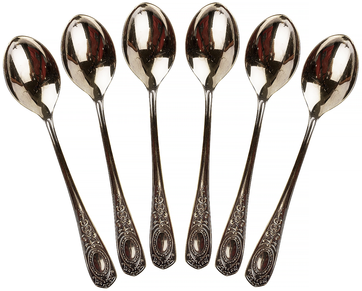 Набор из 6 чайных ложек "Медальон", мельхиор, золочение, винтаж, МНЦ, Кольчугинский завод цветных металлов, СССР, 1970-1990 гг