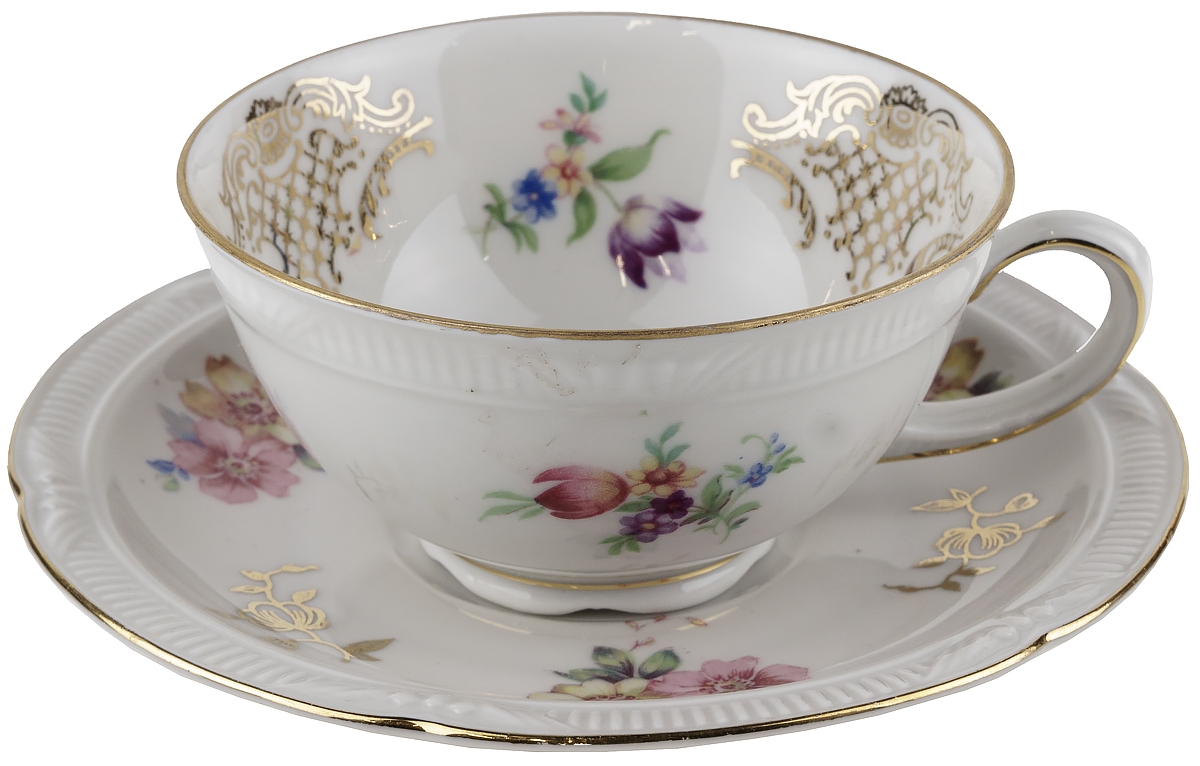 Чайная пара "Букет", фарфор, винтаж, Zeh Scherzer, Германия, вторая половина 20 века