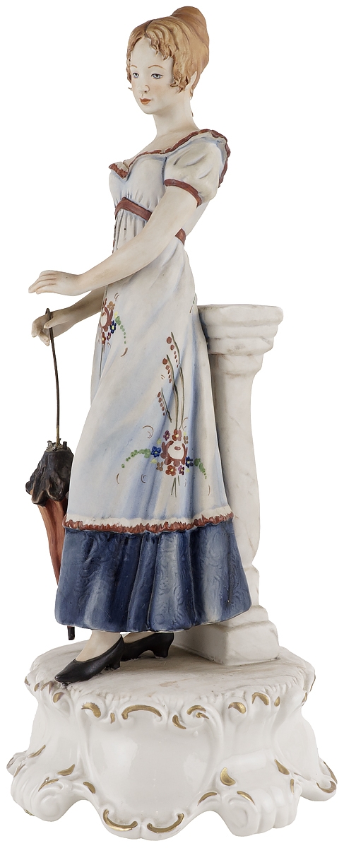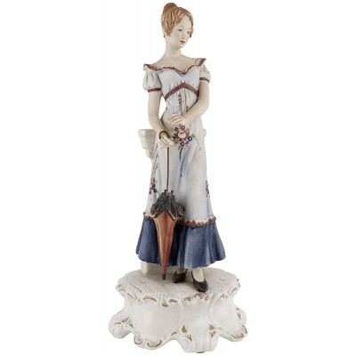 Великолепная редкая жанровая статуэтка "Девушка с зонтиком" знаменитой неаполитанской фабрики фарфора Capodimonte. Этот коллекционный фарфор, отличает тончайшая проработка мелких деталей и повышенное внимание авторов к жесту, позе и выражению лица персонажей.