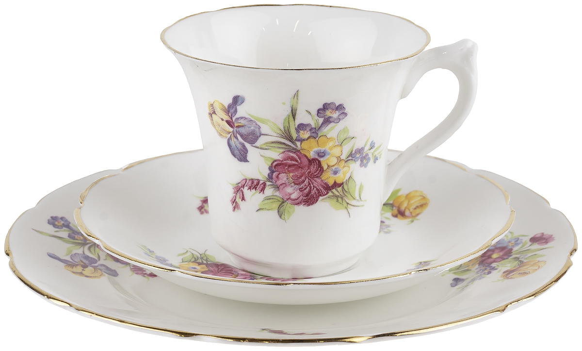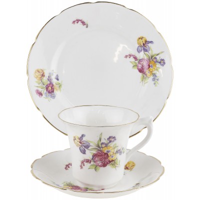 Элегантное чайное трио "Букет с ирисом" из винтажного английского фарфора.