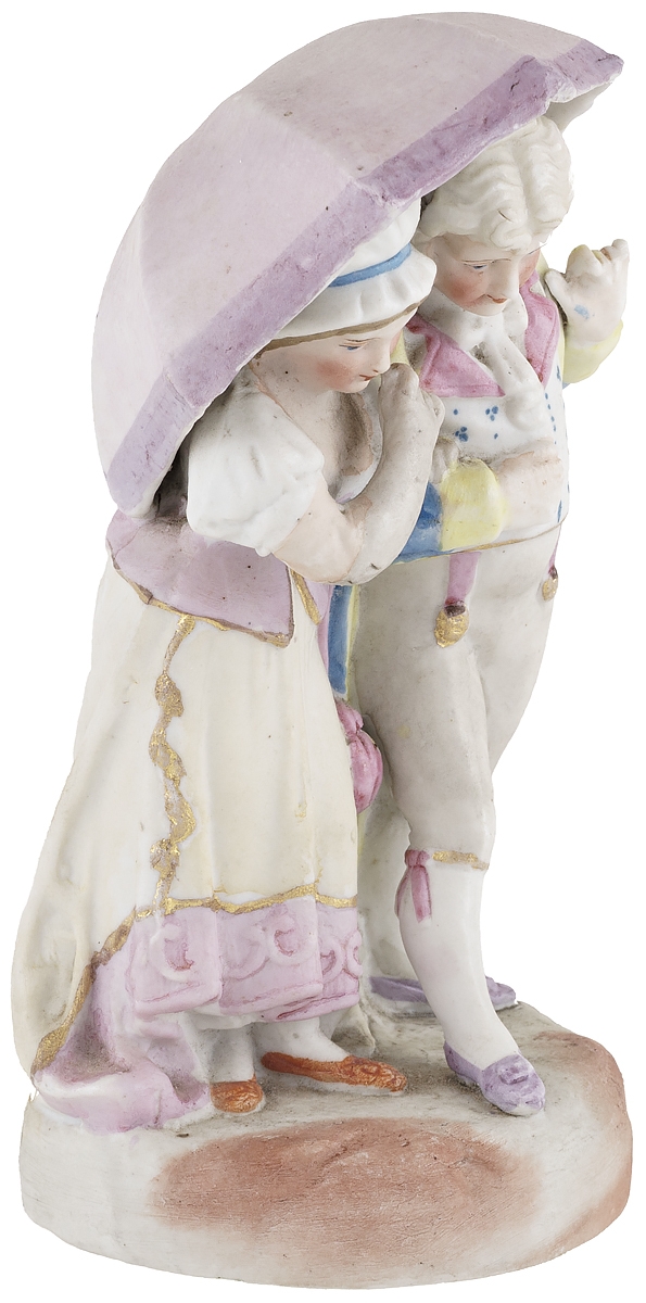 Статуэтка антикварная "Под зонтом". Высота 14,5 см. Фарфор. Германия?, конец 19 века