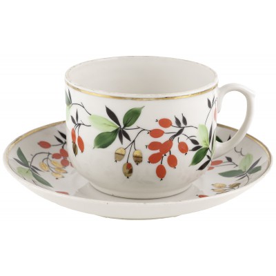 Пара чайная "Барбарис", фарфор, винтаж, завод «Пролетарий» (Бронница), СССР, 1958-1967 гг.