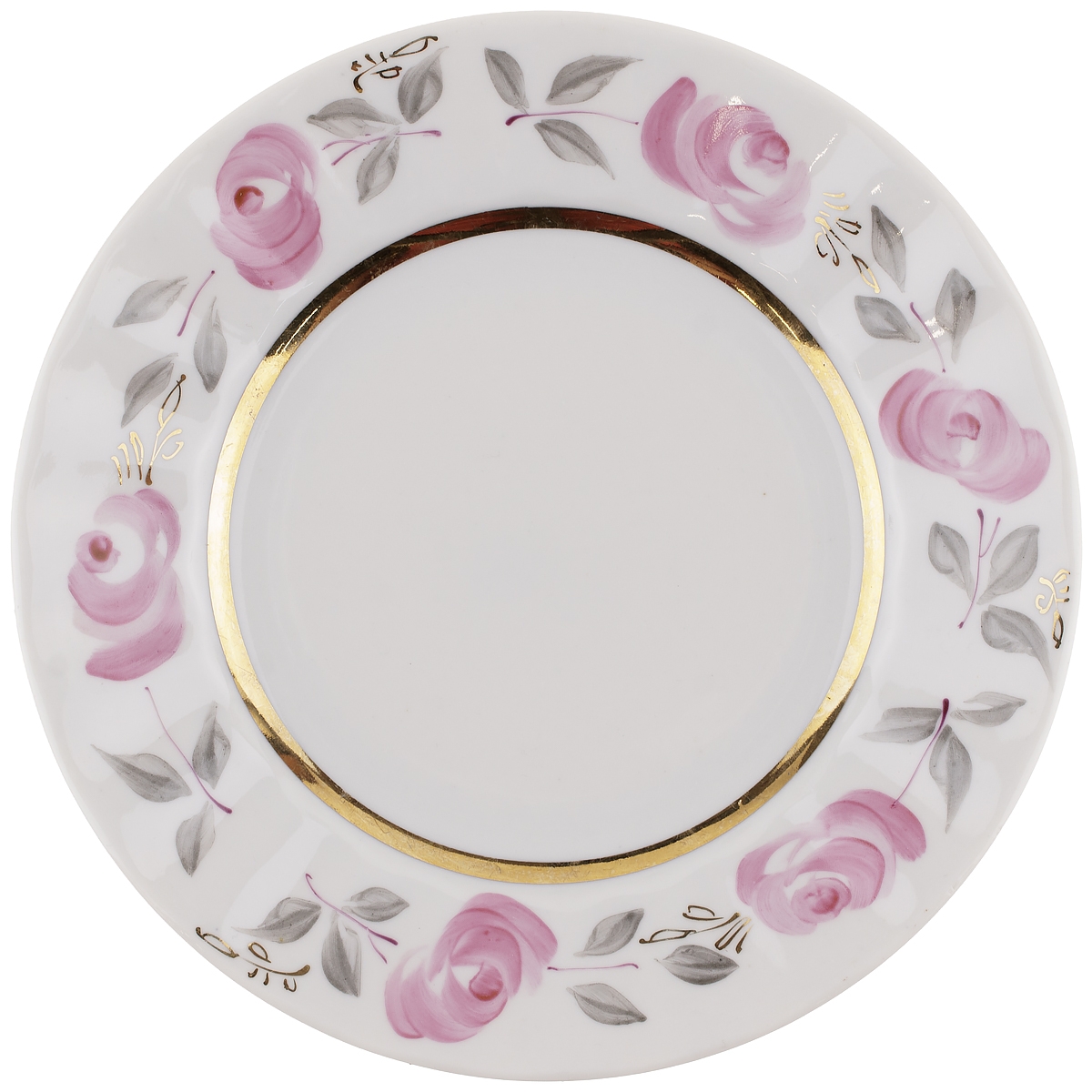 Десертная тарелка и блюдце из сервиза "Розовый", фарфор, винтаж, Вербилки, СССР, 1965 - 1991 гг.