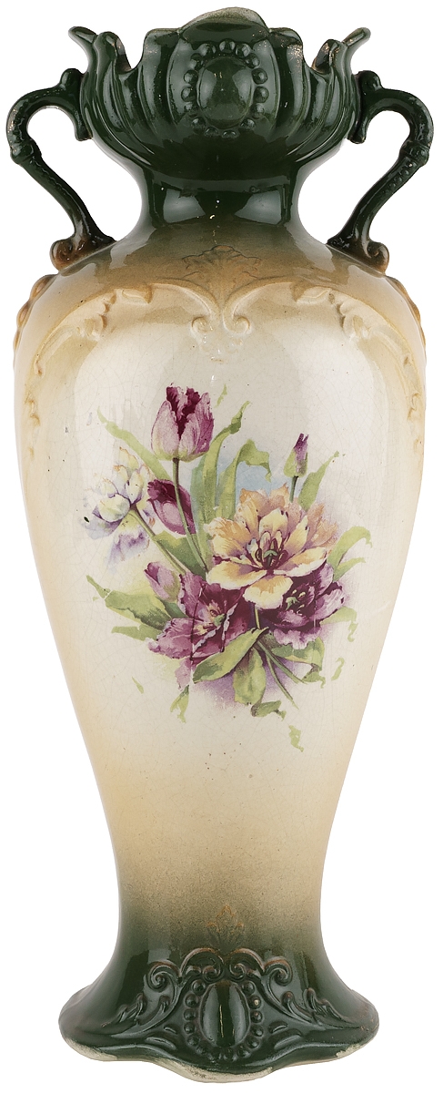 Ваза антикварная для цветов "Цветочный шарм", декоративная. Фарфор. Высота 33 см. Великобритания, начало 20 века.