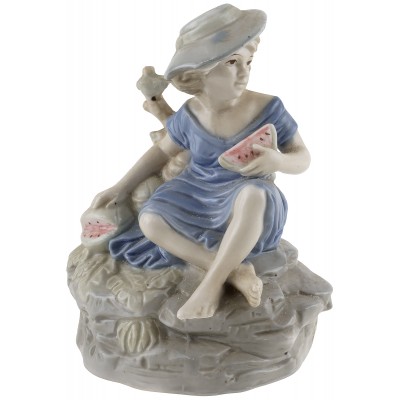 Фарфоровая статуэтка винтажная "Девочка с арбузом", Фарфор, Высота 14 см, Германия?, середина 20 века
