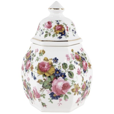 Фарфоровая ваза с крышкой "Английский букет", можно использовать как чайницу или банку для хранения сладостей.