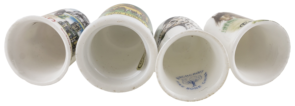 Маркировка: "Lambert Souvenir. Bone china England", "Bone china. Made in England", "Birchcroft. Fine Bone china", один наперсток с наклейкой, один - в тубе.