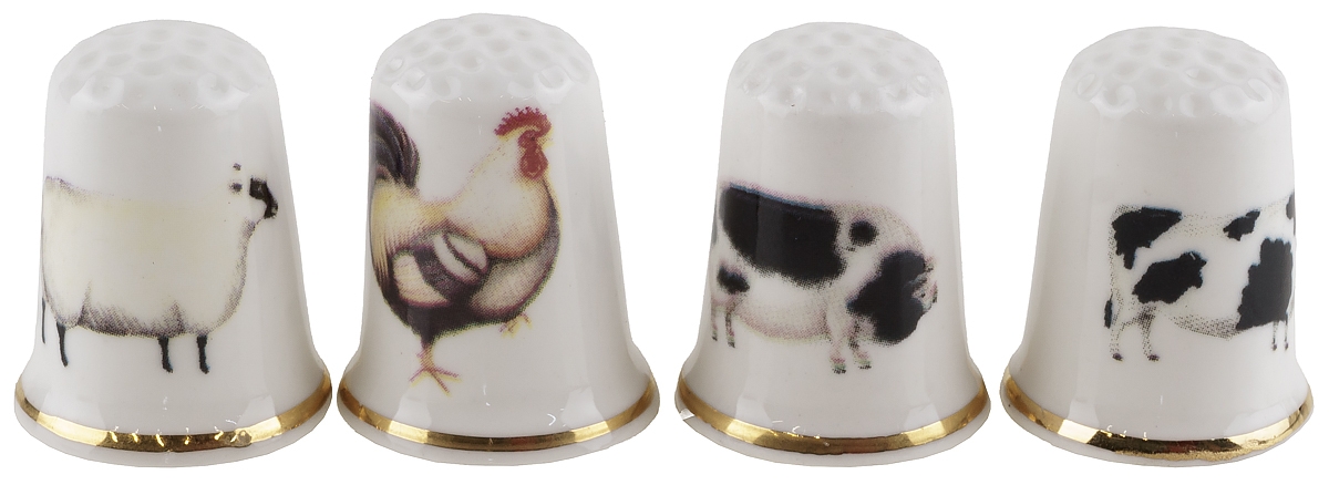 Комплект коллекционных наперстков "Домашние животные", 4 шт. Фарфор, Великобритания, вторая половина 20 века