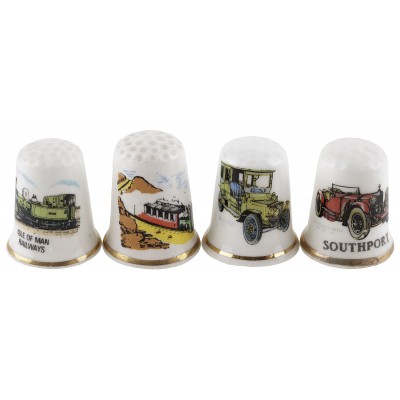 Комплект коллекционных наперстков "Авто и поезда", 4 шт. Фарфор, Великобритания, вторая половина 20 века
