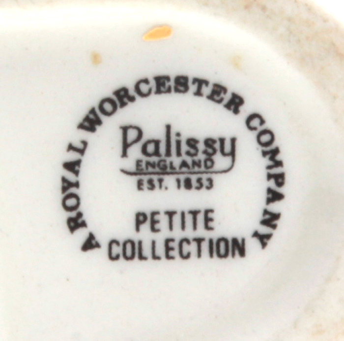 Маркировка: подглазурное клеймо черного цвета "Royal Worcester company. Palisse petite collection. England".