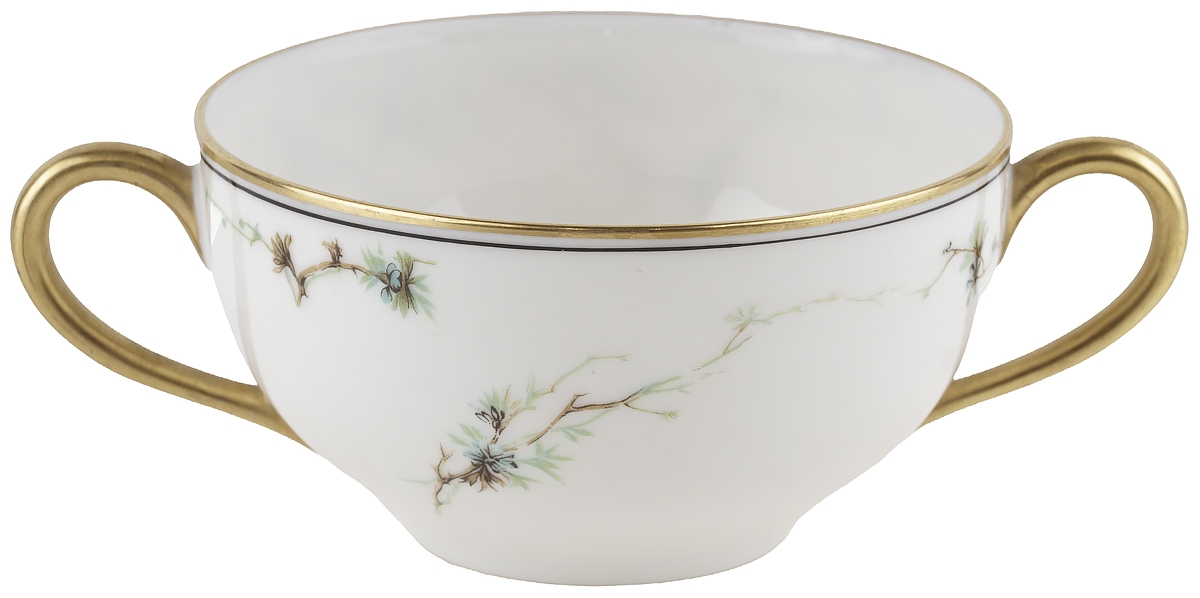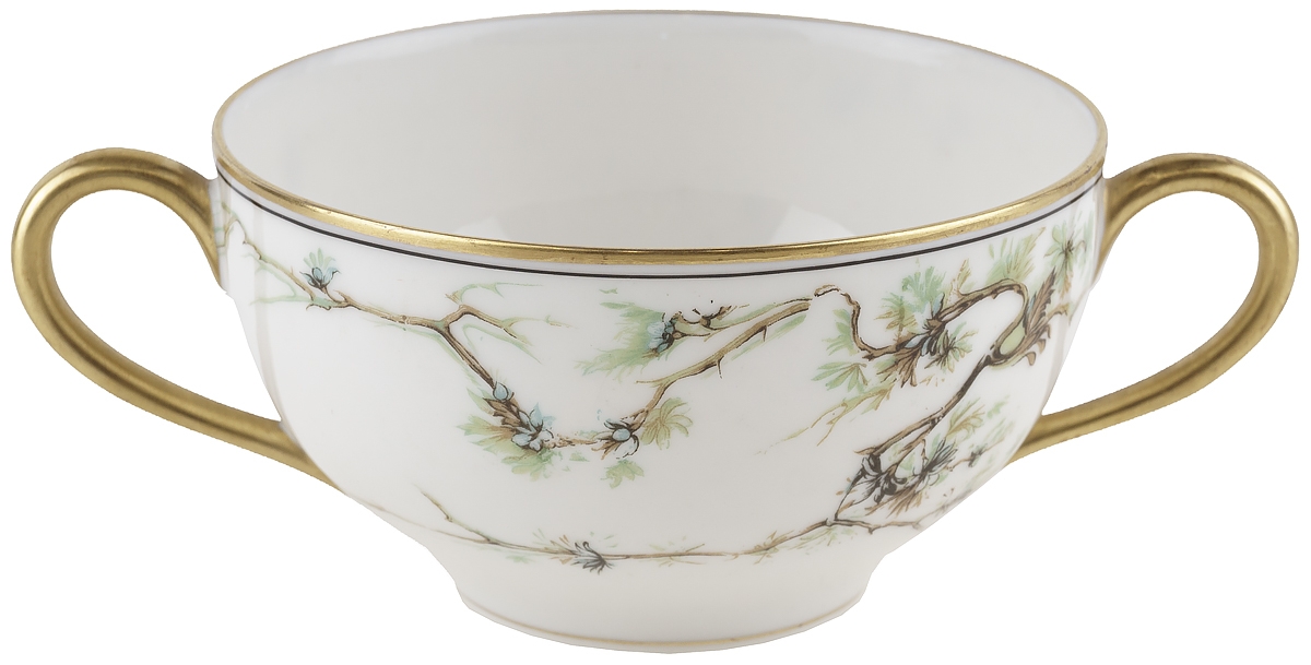 Изумительная чашка для бульона "Ветка" из тончайшего французского фарфора.