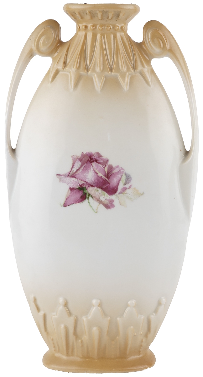 Ваза антикварная с двумя ручками "Красная и белая розы". Фарфор. Высота 26 см. Victoria, Австрия, 1910-е гг. (нюанс)