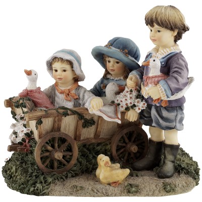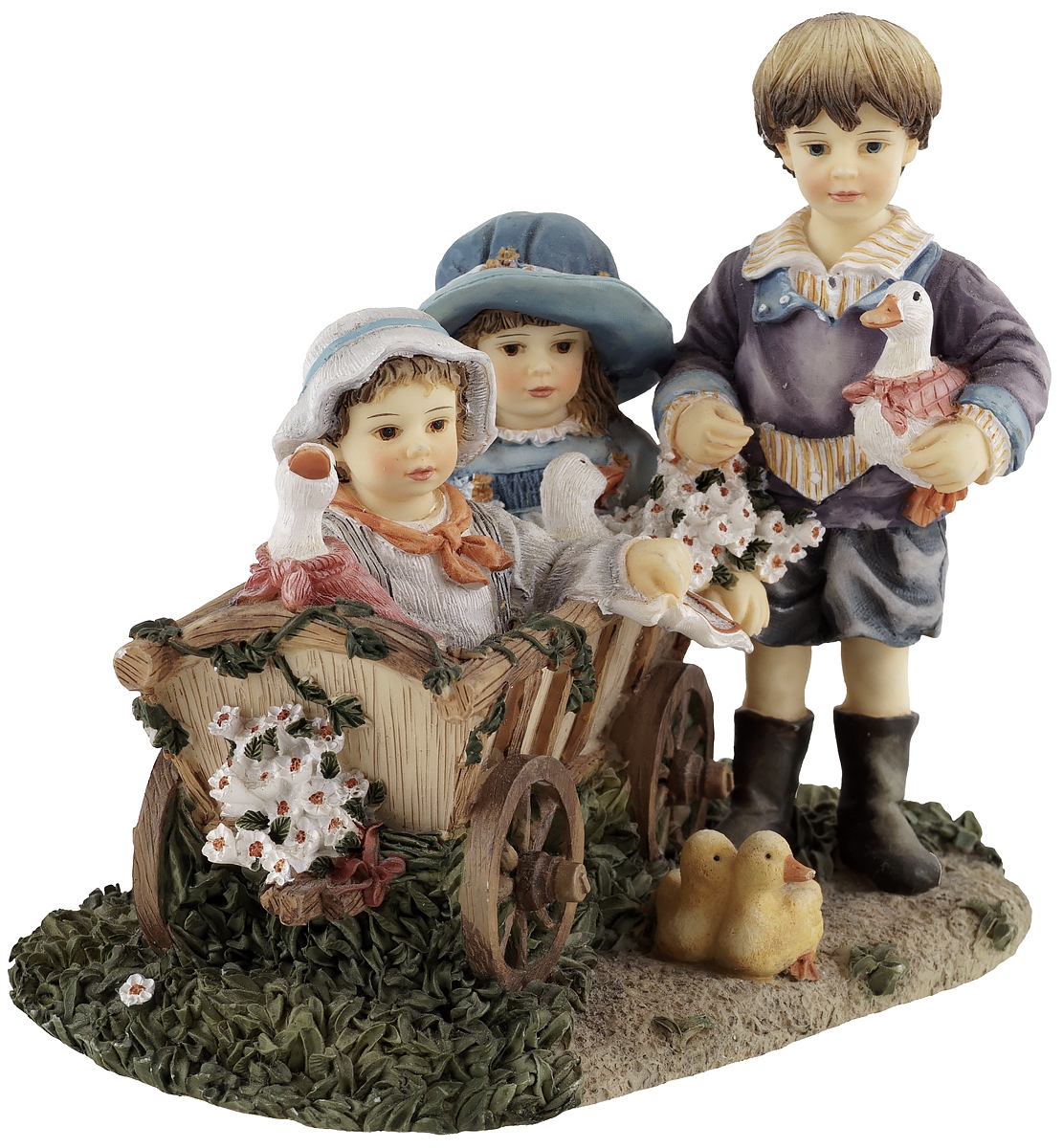 Статуэтка винтажная "Друзья по катанию", дети в тележке, высота 12 см, композитный материал, Leonardo collection, Великобритания, конец 20 века
