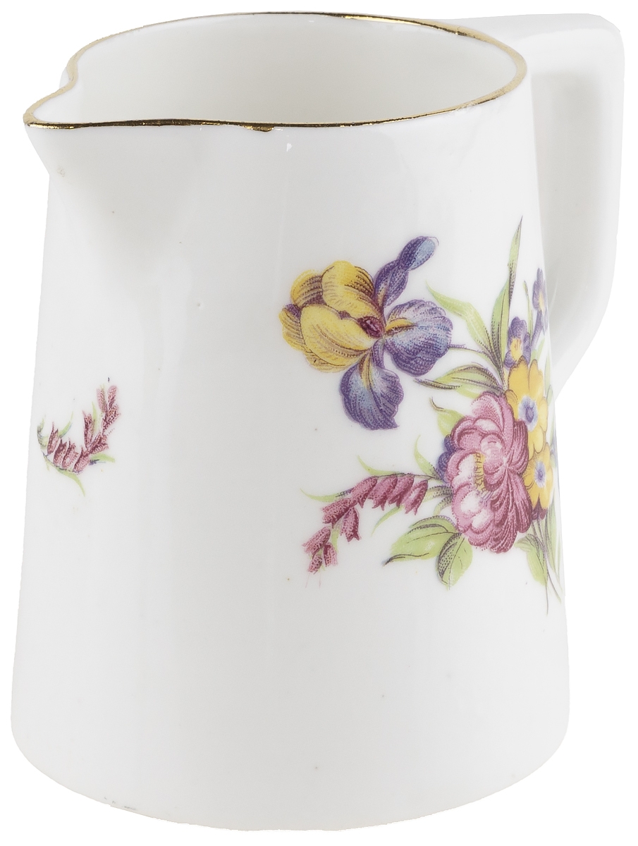 Молочник, сливочник "Букет с ирисом". Костяной фарфор, Великобритания, винтаж, вторая половина 20 века (нюанс)