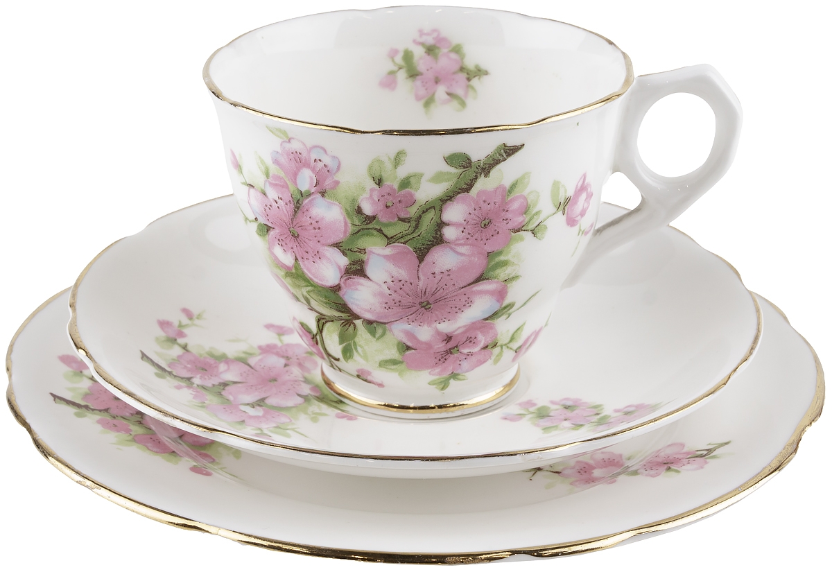 Элегантное чайное трио "Цветущая яблоня" из винтажного английского фарфора.