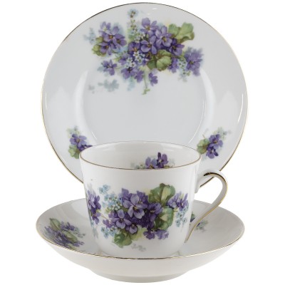 Чайное трио "Фиалки". Фарфор. Victoria, Чехословакия, антиквариат, первая половина 20 века