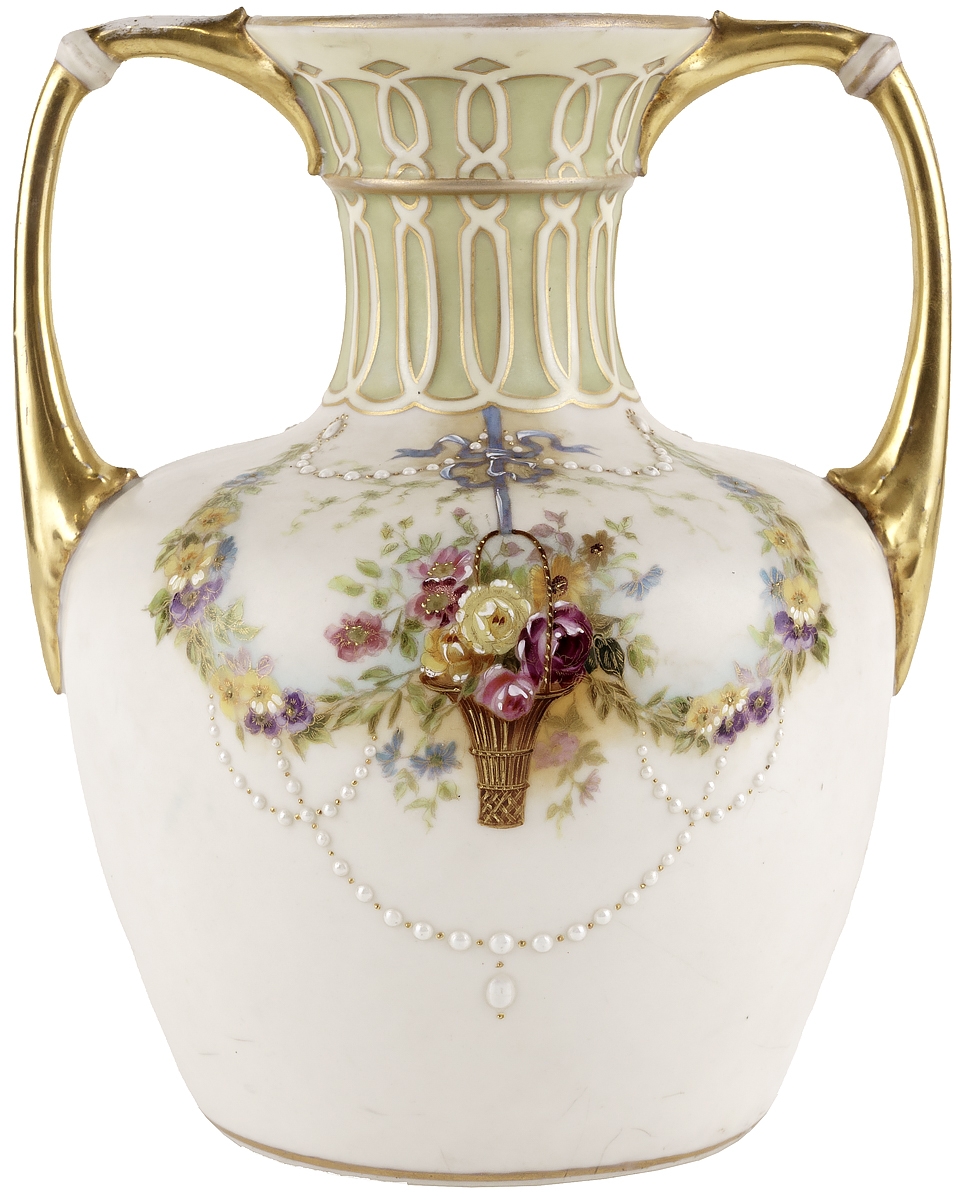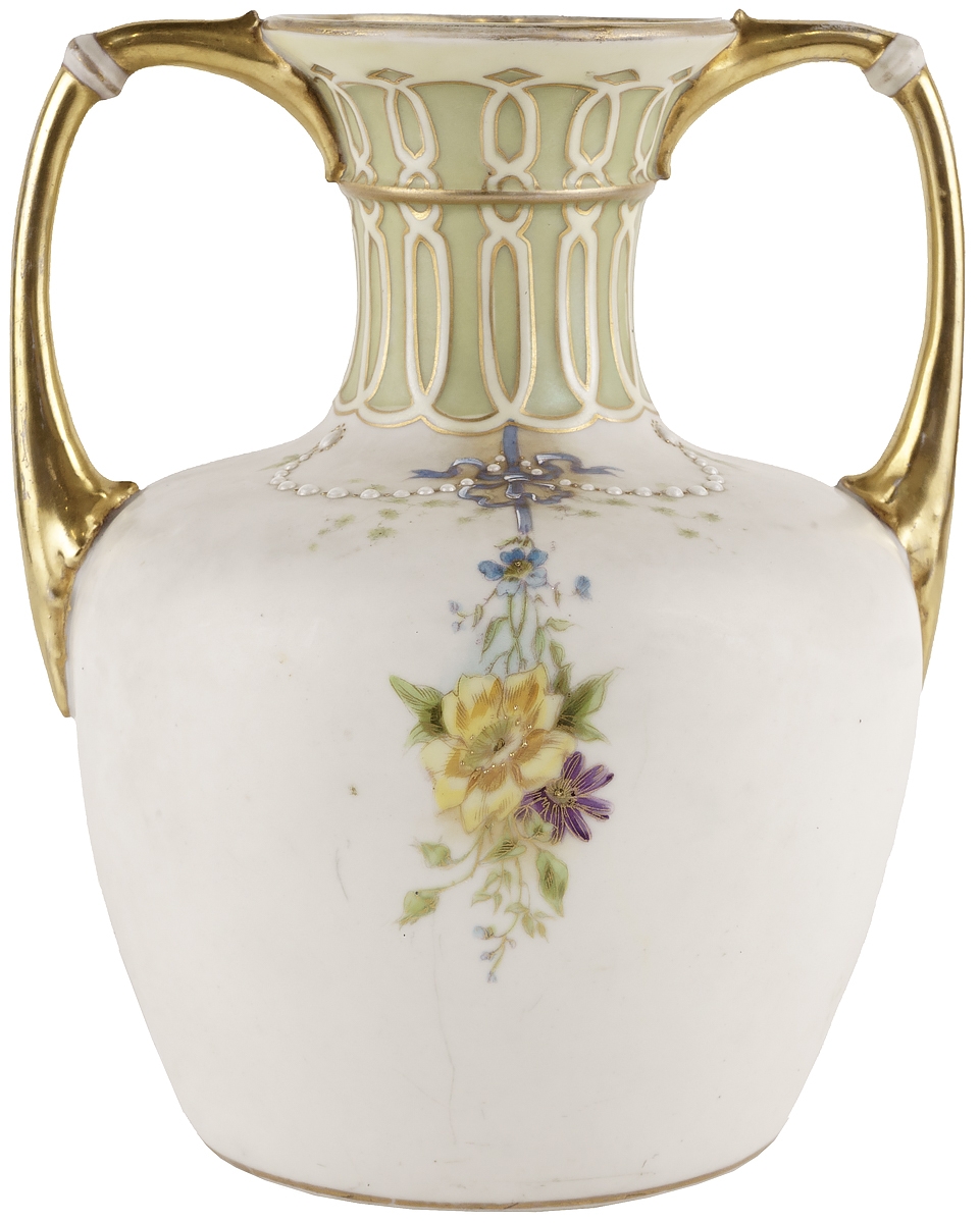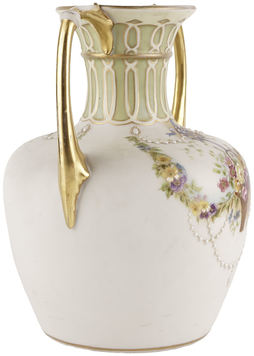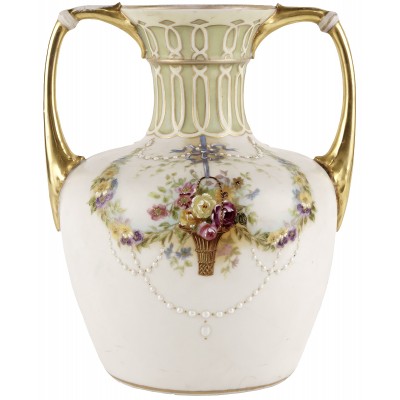 Ваза для цветов антикварная "Ожерелье" с двумя ручками, Фарфор, Высота 20 см, Великобритания, конец ХIХ века.