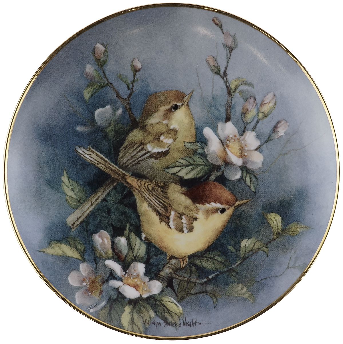 Винтажная декоративная тарелка "Две птички на яблоне" из серии "Setting In" ("Сидя на..."). Выполнена по рисункам художницы Carolyn Shores Wright.