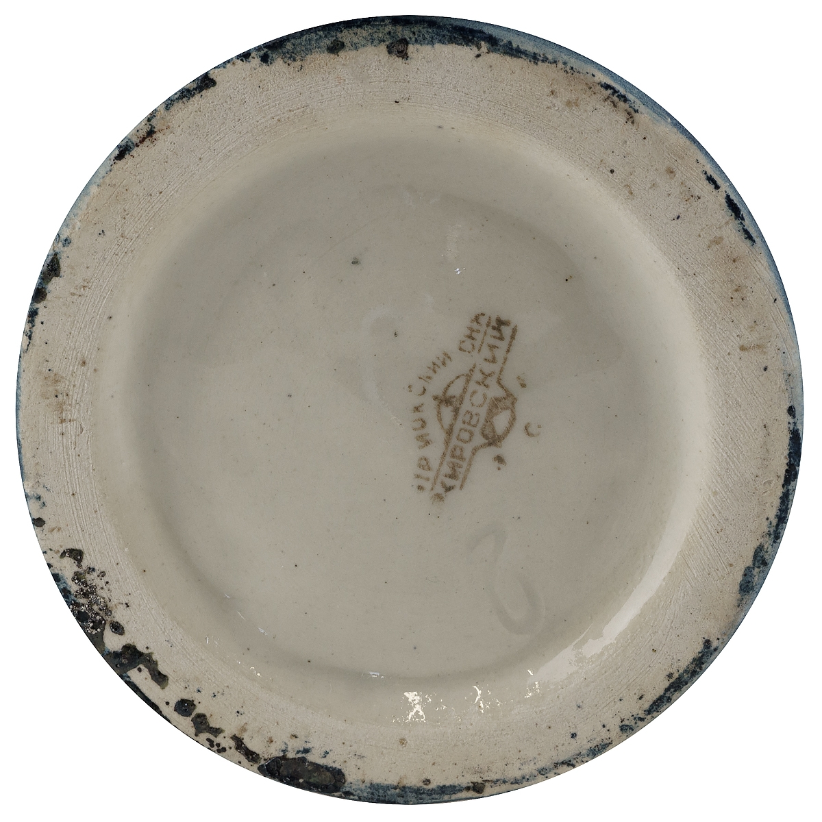 Сохранность хорошая, пятна краски и тенмые точечки под глазурью (производственные дефекты), небольшой скол на внутренней части пробки.