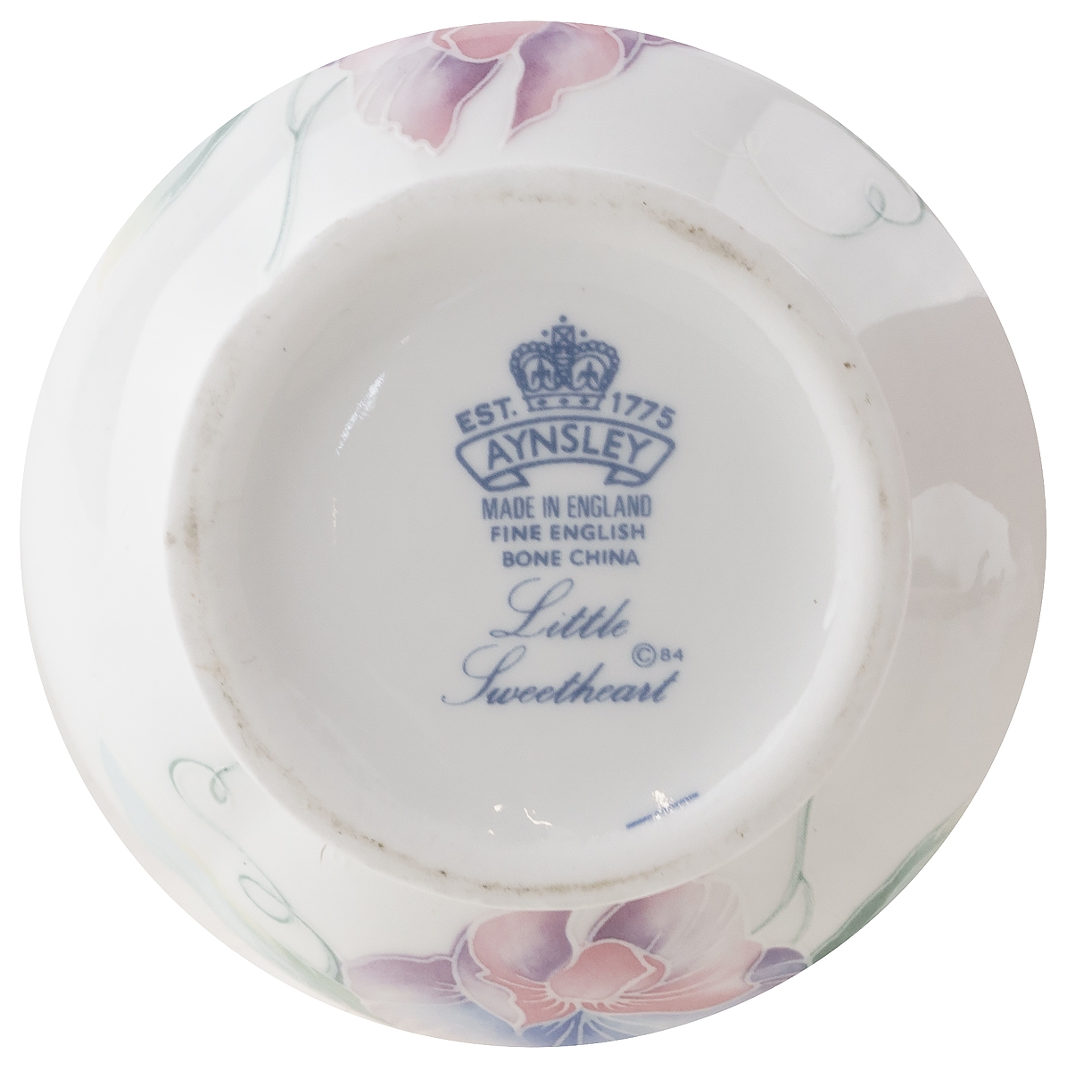 Маркировка: надглазурное клеймо синего цвета "Aynsley. Made in England. Fine Bone China".
