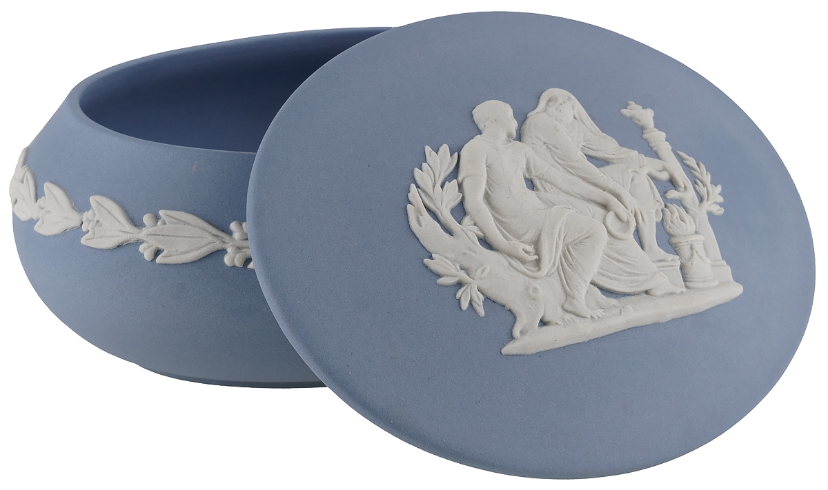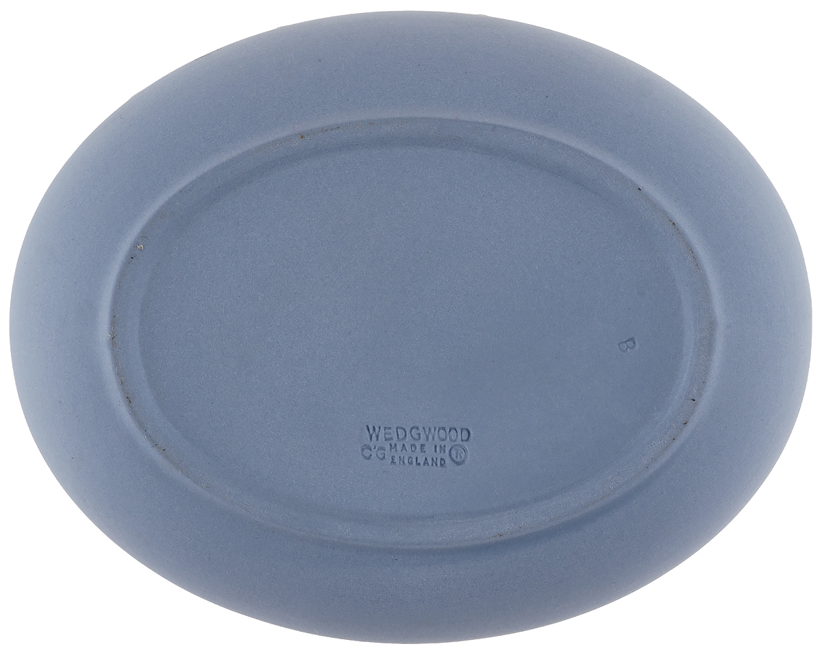Шкатулка для мелочей овальная. Фарфор Wedgwood, голубой бисквит, Великобритания, винтаж, конец ХХ века