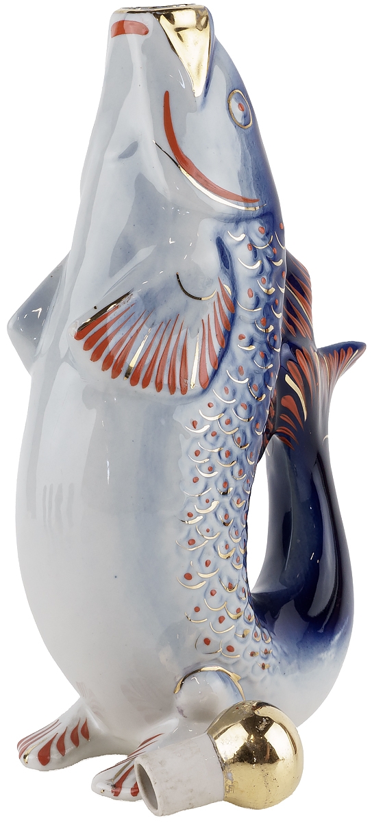 Графин и 6 стопок "Рыбы" синие, Фарфор, СССР, Городница, 1957 - 1960-е гг (с нюансом)
