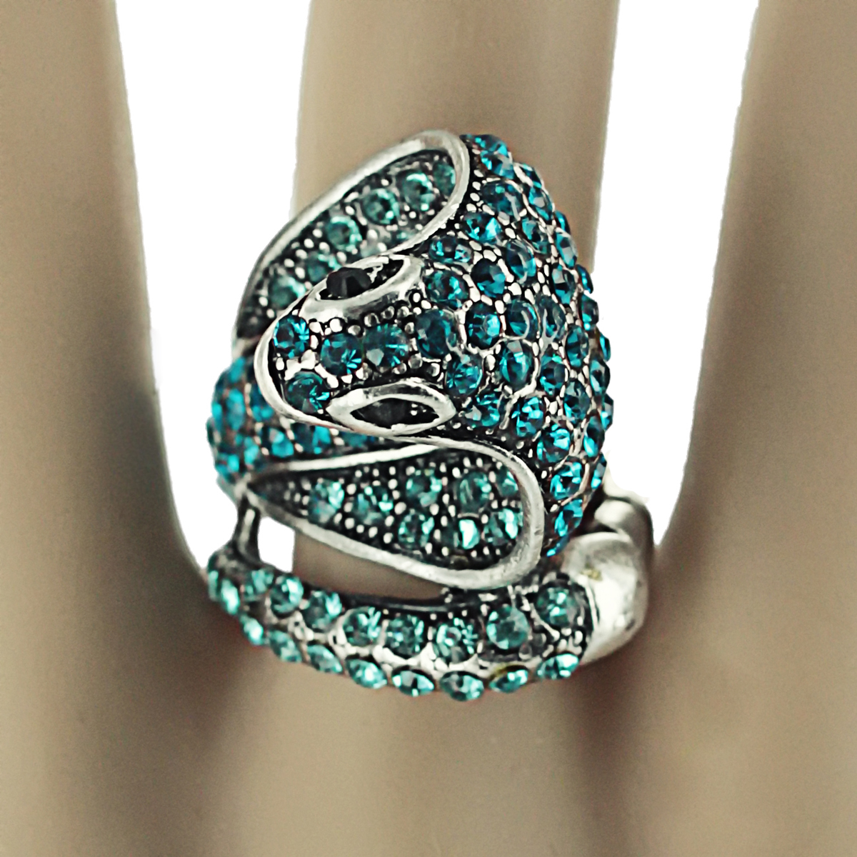 Кольцо коктейльное "Голубая кобра" от Arrina . Голубые стразы, бижутерный сплав серебряного тона. Гонконг, 2010