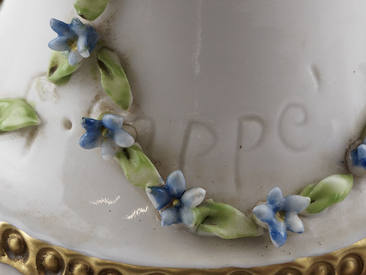 Маркировка: надглазурное клеймо синего цвета в виде буквы "N" с короной, подпись автора в тесте.