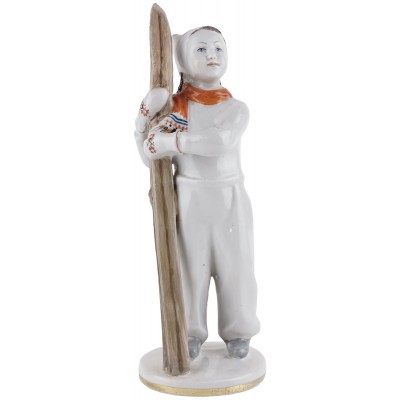 Фарфоровая статуэтка "Лыжница", девочка с лыжами, винтаж, высота 21 см, ЛФЗ, СССР, 1960-е гг.(реставрация)