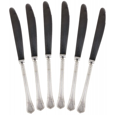 Набор столовых ножей, 6 шт, мельхиор, серебрение, Таллинский ювелирный завод, СССР, 1960-1990 гг. (с нюансами)